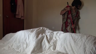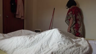 I show my big erection to my maid, she couldn't resist her first BBC