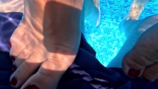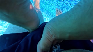 I show my pussy to the lifeguard in the pool and after a piss I get fucked in the bathroom
