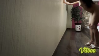 I take the towel off my girlfriend and touch her ass until I cum inside her
