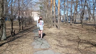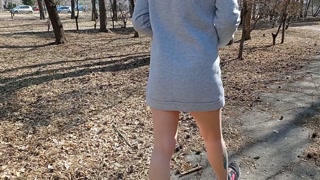 I walk bottomless next to a busy street