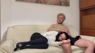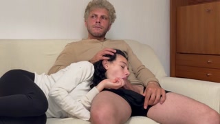 I WATCH TV WITH MY HORNY STEPSISTER AND MAKE HER SUCK MY COCK