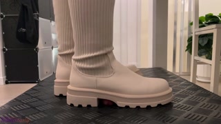 I Will Not Stop Crushing You... Until I Hear the Safe Word! White Combat Socks Boots