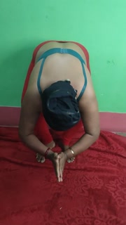Indian BBW mom workout in red leggings and bra and showing asshole
