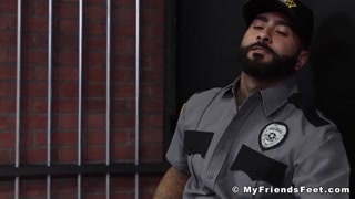 Inked prison guard Rikky Ork has his feet licked by prisoner