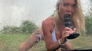 INSTAGRAM:ClaudiaMacc7-PISSING IN THE RAIN - FUCKING A DILDO ON THE CAR WINDSHIELD