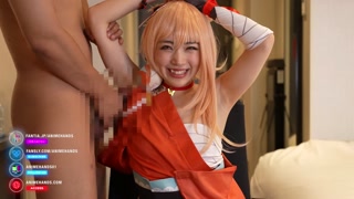 Japanese cosplayer gives a guy an armpitjob.