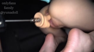 japanese girl enjoys machine dildo fuck in a car with a man