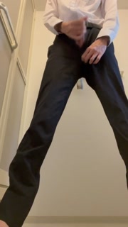 Japanese guy 18 cm dick handjob with a suit