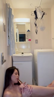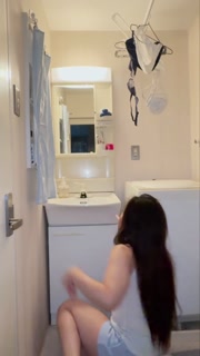 Japanese stripper stripped in the washroom.