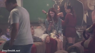Jeny Smith bottomless in the club. Painted shorts looks like real