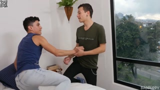 Joaquin stands up behind Col and slowly inserts his hard rod into Col's warm and tight tunnel.