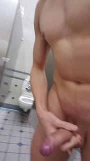 Jock Teen Walks Out Completely Naked in Airport Bathroom & Cums in Urinal