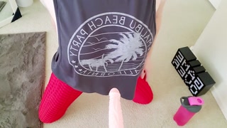 JOI From Personal Trainer With Puffy Pussy Lips Goes Into A Hot Downward Doggy Pose!