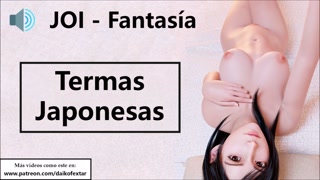 JOI hentai in the Japanese hot springs. Spanish voice.