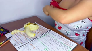 Joi in Spanish - Miss fantasizes about her teacher while he masturbates you with a banana on your tits