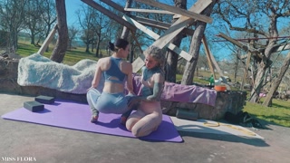 JOI Voyeur Stretching in Yoga pants with my tattoo girlfriend Anuskatzz