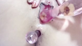 【おまんこアナル2穴責め】ヒクヒクケツ穴にディルドをブチ込みながらまんこをくぱぁしてディルドを抜き差しオナニー大好き変態女子素人自撮り変態痴女