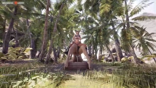 Lara Croft was fucked by a huge cock of an awakened statue that filled her pussy and ass with sperm to the brim