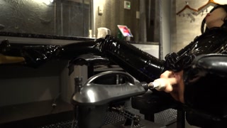 Latex catsuit machin sex high heel boots