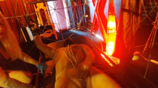 Latex Mistress drains the slave!