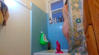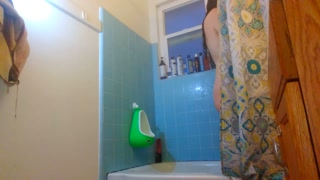 Laughing Slutty COCK TEASE shower Cellulite Booty Hairy Camgirl PAWG Bathtub Bathroom Bend Over