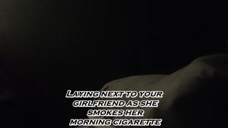 Laying next to your girlfriend as she smokes her morning cigarette POV