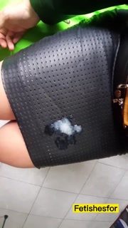 leather mistress handjob & blowjob for a fan custom clip, cumshot on leather skirt