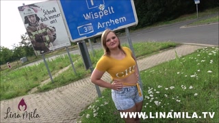 LINA MILA Horny on the highway! Spontaneously fucked in a sex parking lot