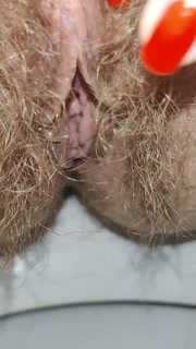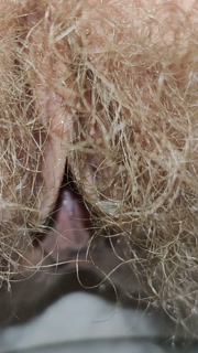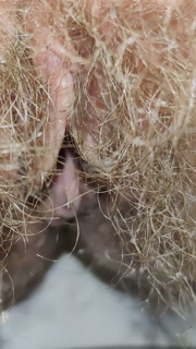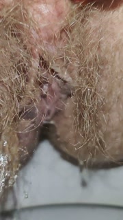 Little cute piss through huge bushes of hairy pussy