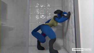 LUCARIO MASTURBATES TO CLIMAX IN SHOWER (KEEPS GOING) (TAIL DILDO)