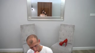 Lucky guy licks the feet of a cute girl