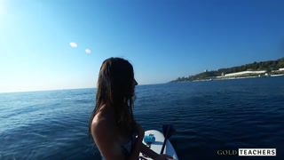 Lustful student seduced a surf instructor and gave him her virginity right in the sea