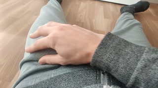 Lying on the floor, in my pajamas, I am playing again with my thick milk and this nice huge fat cock