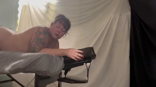 Massage stress relief no better way then a Squirting Fisting Toy session and Huge Cock filled Throat
