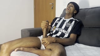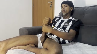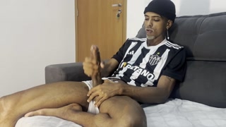 Masturbating his huge cock