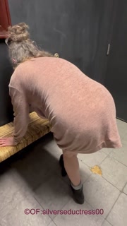 Mature mom playing in porn theater bathroom.
