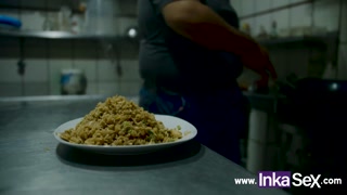 Mature white waitress fucks black guy for not paying for her food