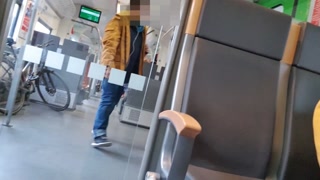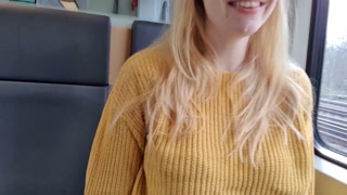 Megakrank! Süßes Mädchen bläst mitten im Zug einen Schwanz