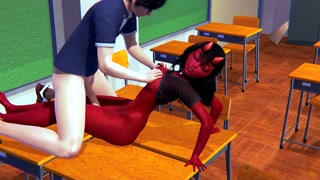 Meru the succubus cowgirl fucks in classroom hentai
