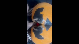 Mi esposa me sorprende en Halloween pinta su culo de calabaza me da una mamada y la follo duro
