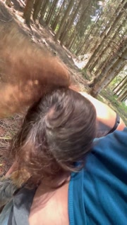MILF gives a quick blowjob in the forest and swallows cum