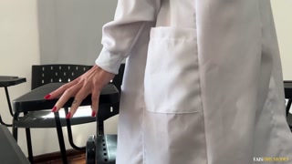 MILF teacher gets tired of waiting for her student and decides to CUM alone in the classroom
