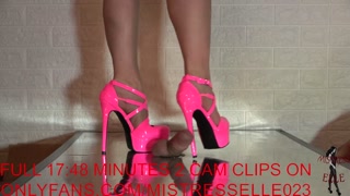 Mistress Elle tortures her slave's cock with her pink high heels