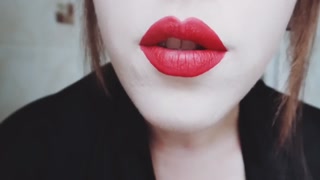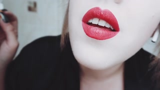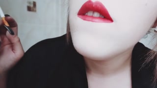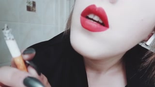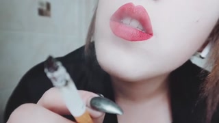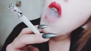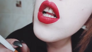 MISTRESS WITH LUSCIOUS RED LIPS CLOSE-UP SMOKING CIGARETTE