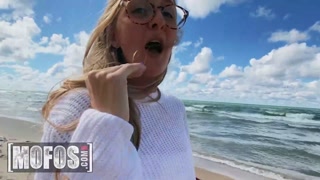 MOFOS - Busty Blonde Molly Pills Gets Nude On The Beach On A First Date And Gets Creampied In POV