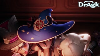 Mona Lynette Lyney gives Aether a Triple Blowjob Fontaine Genshin Impact 3D Porn Sex 60 fps POV