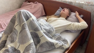 Morning masturbation ended in a loud orgasm. I caress my tight pussy.