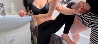 Morning sex on the sink with my mature woman in sports leggings