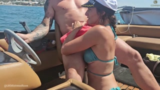 Mouth full of semen on the open sea.