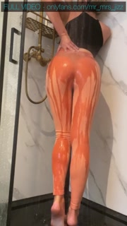 Mrs Jizz rinses cum off her yoga pants ass